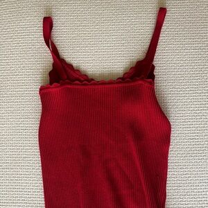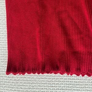 Stylish red ribbed tank top with scalloped edges.
