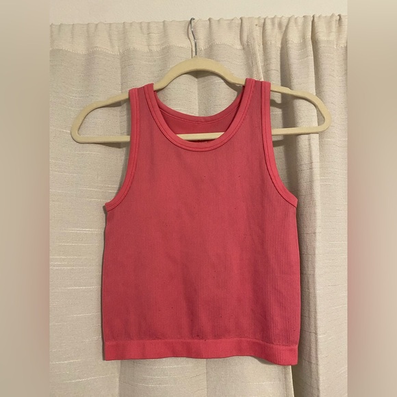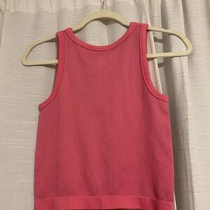 Stylish pink ribbed tank top. Perfect for casual wear. Has thread balls as pictured