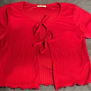 Red Ribbed Tie-Front Top