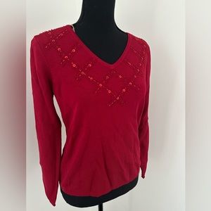 Red Ribbed V-Neck Top