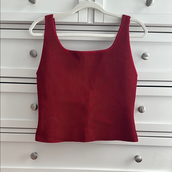 Elevate your style with this chic red ribbed top. Perfect for any occasion, this top offers both comfort and elegance.