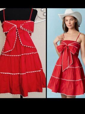 Red Ric Rack Bow Front Dress Small