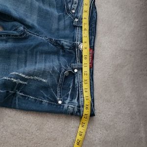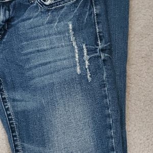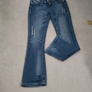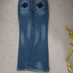 Red Rivet stonewash distressed jeans with beautiful detailing..thick stitching around the fleur-de-lis design on back pockets ..with crystals on front..they do stretch