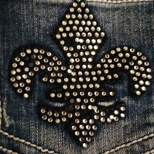 Very cute Jean capris great condition worn 2x love the design on the back I would keep if they fit! Also some gems came off the back pocket designs & i didn't even know until now so not noticable at all as pictured. Red Vivet.