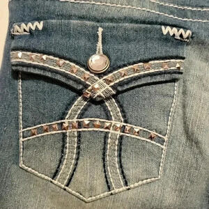 Boot Cut Jeans with 5 Pockets, Decorative Buttons, Decorative Back Pockets, 56% Cotton 39%Polyester 4% Rayon 1%Spandex, 30 X 31, Like New