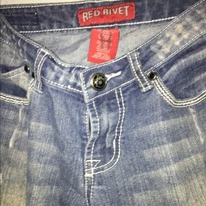 Red Rivet Ripped Jeans