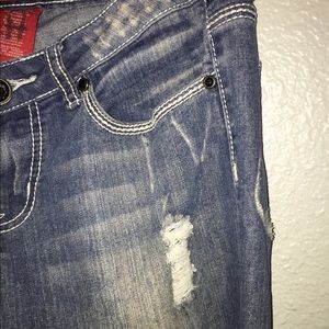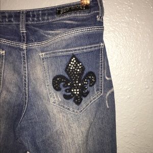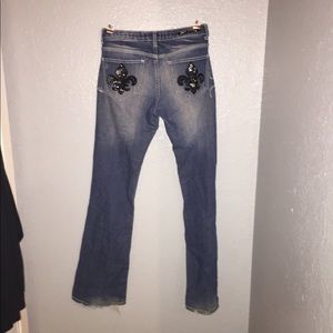 Ripped Jeans Black Details on back pocket Some jewels are missing from the back pockets Has a few rips Size 5