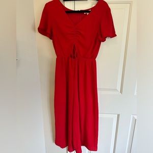 Red Romper with small cut out and synching in front. Pants with shorts double lined under layer. WORN ONCE. Perfect condition.