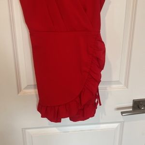 Red Romper with Ruffled Hem