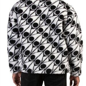 Brand Logo Print Design, Faux fur finish, 2 front pockets, Mid weight, Stand collar, zip front closer, polyester, imported and machine wash
