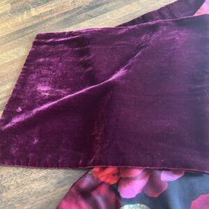****This stunning red rose side & burgundy velvet side scarf is in nice condition. The velvet side has some light wear. (please see photos). The rose side is very nice. Overall a beautiful soft scarf with vivid red roses. Please see measurements in photos. I am happy to answer any questions. Smoke free home. I ship quickly. Thank you for shopping with me!
