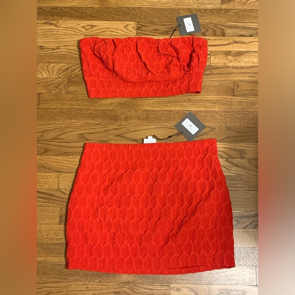 Red rose embossed two piece skirt set Brand new with tags on it. Originally $38 per piece