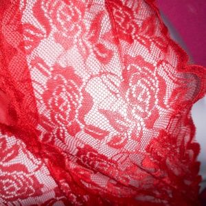 Red Rose Lace Mesh Stretchy Halter Bodysuit