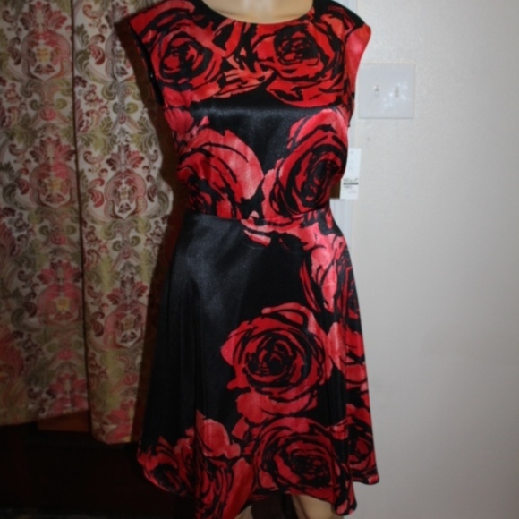 Elegant Donna Morgan red rose dress. Perfect for date night or a day on the job.