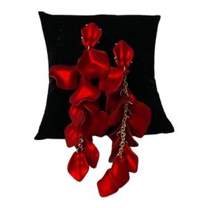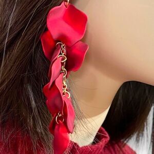 Embrace the allure of these captivating earrings and let them elevate your style. Elegant rich red rose petals dangle earrings, designed to accentuate and frame your neckline beautifully. Vibrant red flower petals that elegantly cascade downward, creating a striking statement piece! 925 sterling silver posts, provide a hypoallergenic option for sensitive ears. Their romantic, elongated design of red petals adds a touch of sophistication and charm, making them the perfect accessory for special occasions or an evening out.