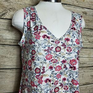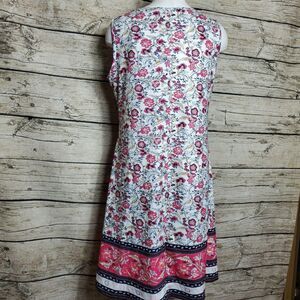 Red Roses Floral Print Casual Spring V Neck A-line Sleeveless Flowy Summer Dress
