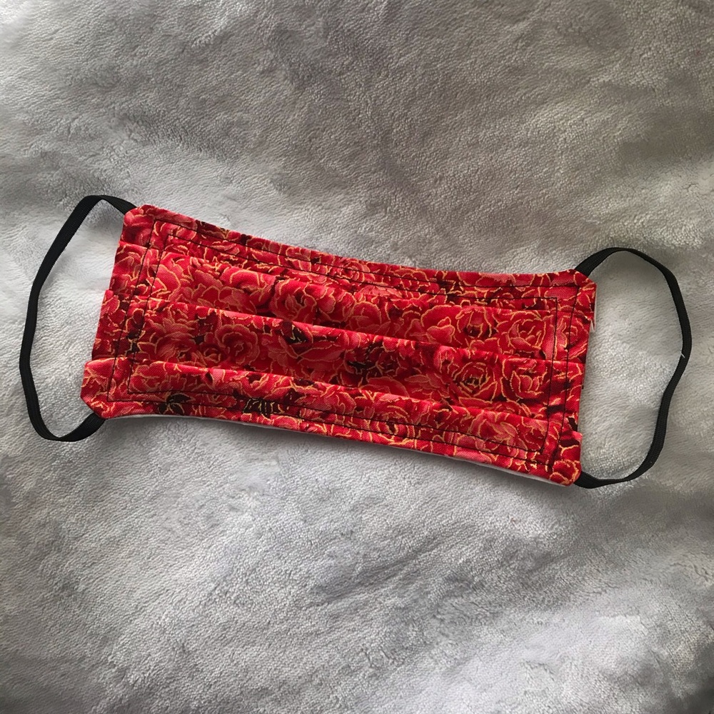 Cute rose design. Handmade mask 100% cotton. I have adult and child sizes. I do ties and elastic!