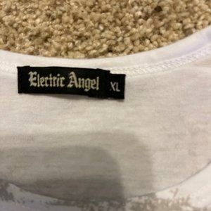 Nice tee with red roses and sword design, cap sleeves. It's an XL, but not 'full cut'. New