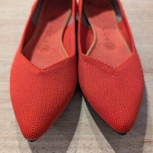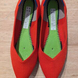 Rothy's pointed-toe flats in red. Great condition. Machine washed on cold and air dried. Worn with insert socks so no wear to the insoles.