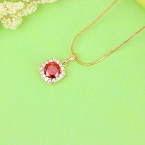 "Red Round Stone Pendant in Gold Plated Brass with Crystal Halo, XPPT1773