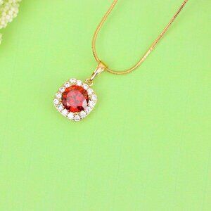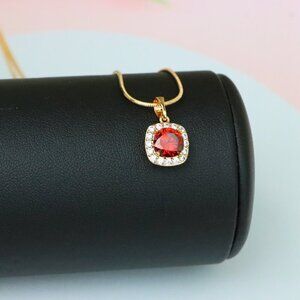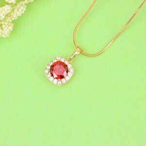 "Red Round Stone Pendant in Gold Plated Brass with Crystal Halo, XPPT1773