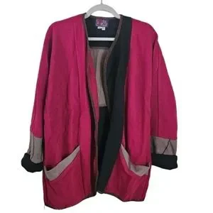 Red Rover Color Block Open Front Jacket Size M