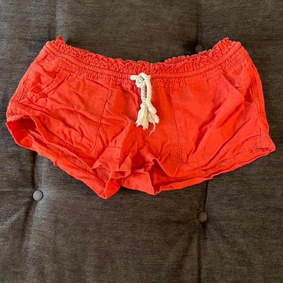 Gently worn (will look better once pressed or steamed) Roxy linen shorts size Large. Coral Red color!