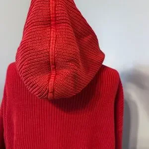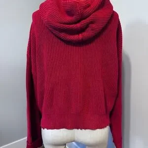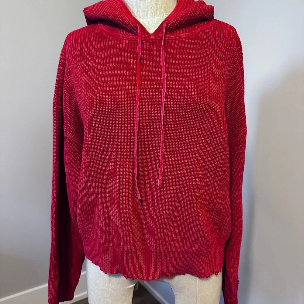 Distressed edges on this great RtA sweater! Lined hood, oversized, comfy sweater. Perfect w/jeans! All measurements are approximate and are taken across front with garment lying flat. Underarm to underarm 22"; underarm sleeve length 18"; overall length 19". EUC!