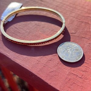 Red Ruby Rhinestone Gold Tone Metal Cuff Bracelet Stackable Birthstone Circle of