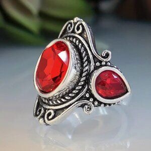 This beautiful costume jewelry ring is made from three red cubic zirconia.