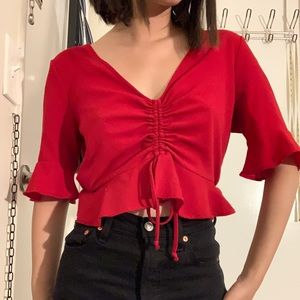 Red Ruched Crop Top