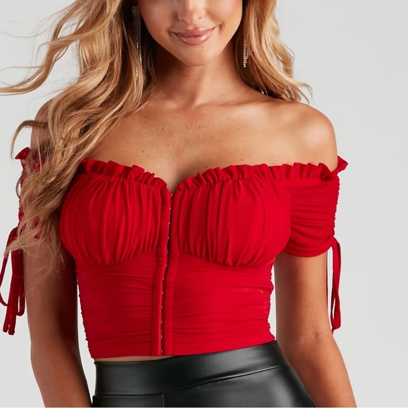 Red Ruched Crop Top