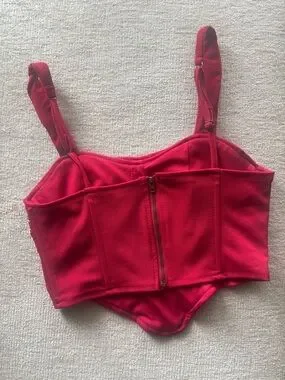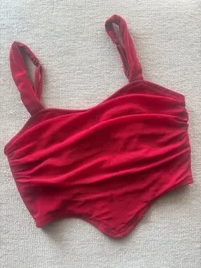 Flattering red corset-style top with ruched detailing and a structured fit ❤️