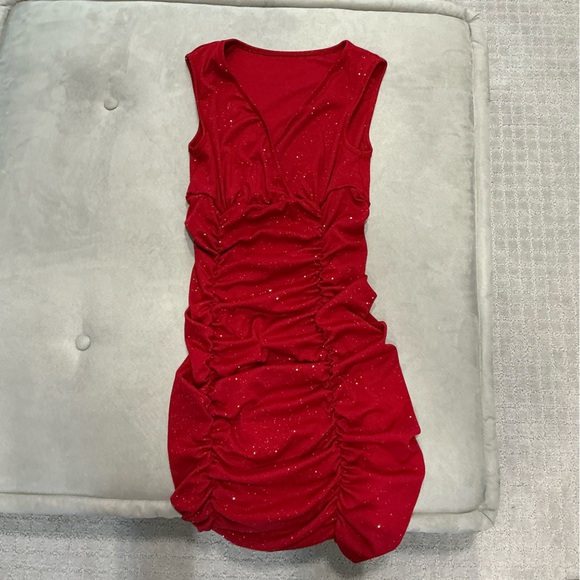 Red Ruched Dress sparkly bodycon