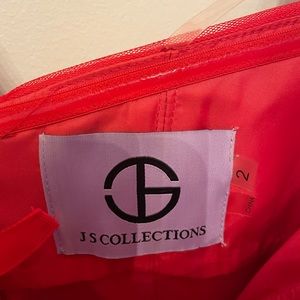 Red ruched dress worn once to a formal event. Strapless mermaid gown, size 2. Absolutely love this dress, just too small for me now :) no stains or rips. Has been altered to be shorter by an inch.