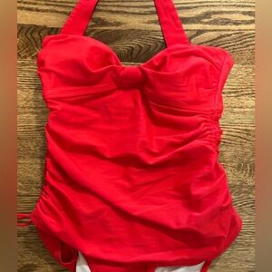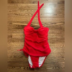 Red Ruched Halter One Piece Swimsuit Adjustable Bathing Suit Size XS