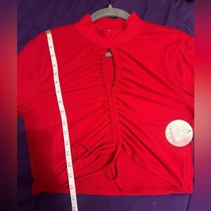 Elevate your style with this chic red cropped and ruched long sleeve top. Perfect for any occasion.