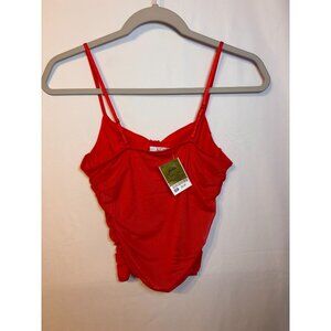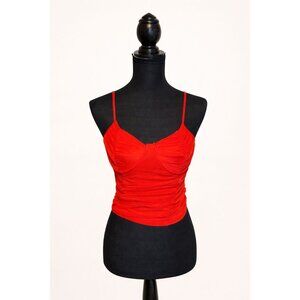 NWT) in very good condition with original Ross tag attached. Bright true red with adjustable spaghetti straps, flattering ruched sides, and structured bust detail with light lining for coverage. No flaws noted. Such a fun statement piece styled with high-waisted jeans and heels for a night out or layered under a blazer for a bold pop of color.
