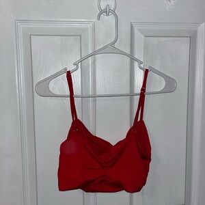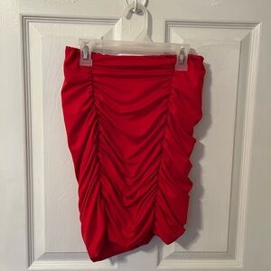 Red Ruched Set. Size medium with stretch. Best fits sizes 4-8. Red cropped tank/ bralette with high waisted skirt. Thrifted and hasn’t been worn since purchased. Not sure how many times it’s been worn but it’s in excellent condition with no damage. Price negotiable.