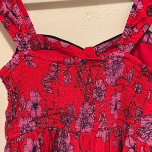 This stunning mini dress features a vibrant red hue with elegant ruched detailing along the bodice, complemented by a sweetheart neckline and cap sleeves. Perfect for a wedding guest or a night out, its lightweight fabric ensures a graceful flow with every step.