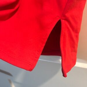 Stylish and vibrant red top featuring a charming ruched front design. Perfect for adding a pop of color to your wardrobe.