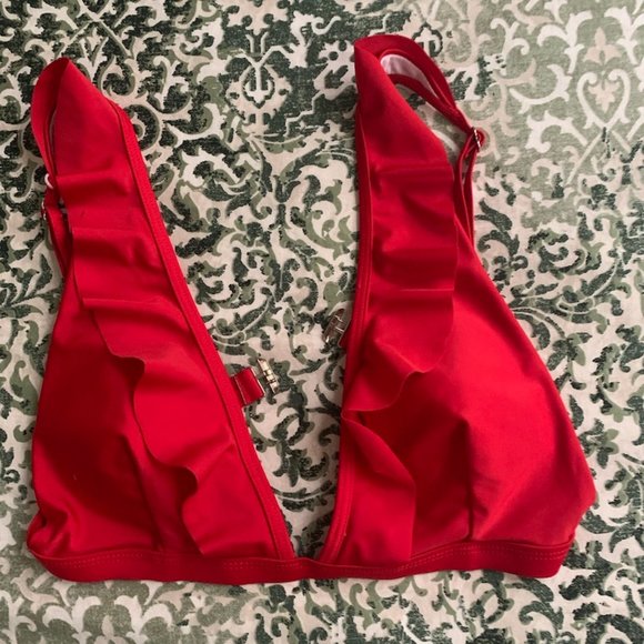 Red bikini top with adjustable straps, ruffle frill on front with padded cups Cute for Forth of July, on every skin tone! Never worn