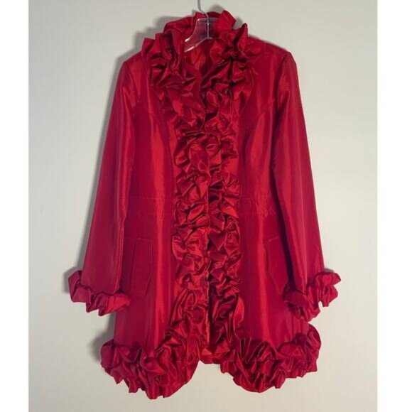 Women's size M/L. This is such and elegant jacket perfect for the holidays. 100% Poly silk. Measurements in pictures.