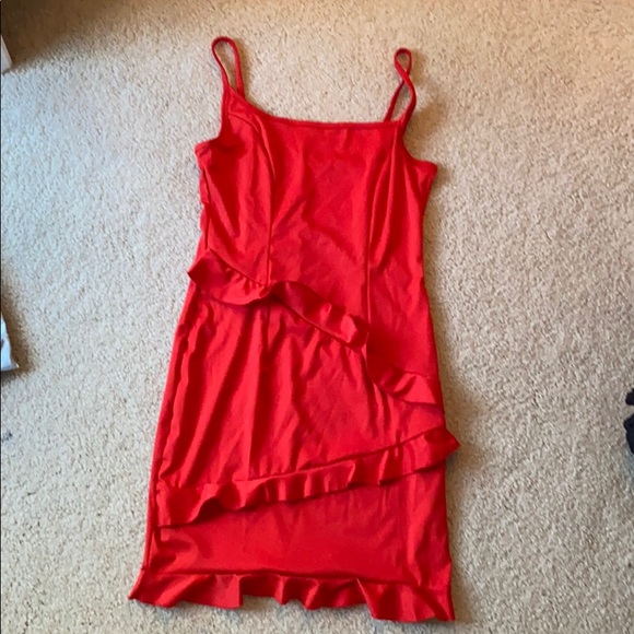 Red fitted dress with ruffles and spaghetti straps, comfy material