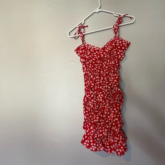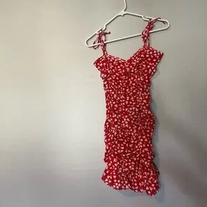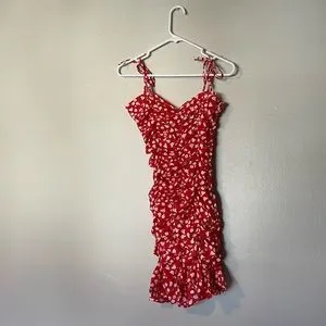 Never Worn XS Red Flower Print Ruffle Dress! It's super cute, just not my size anymore!
