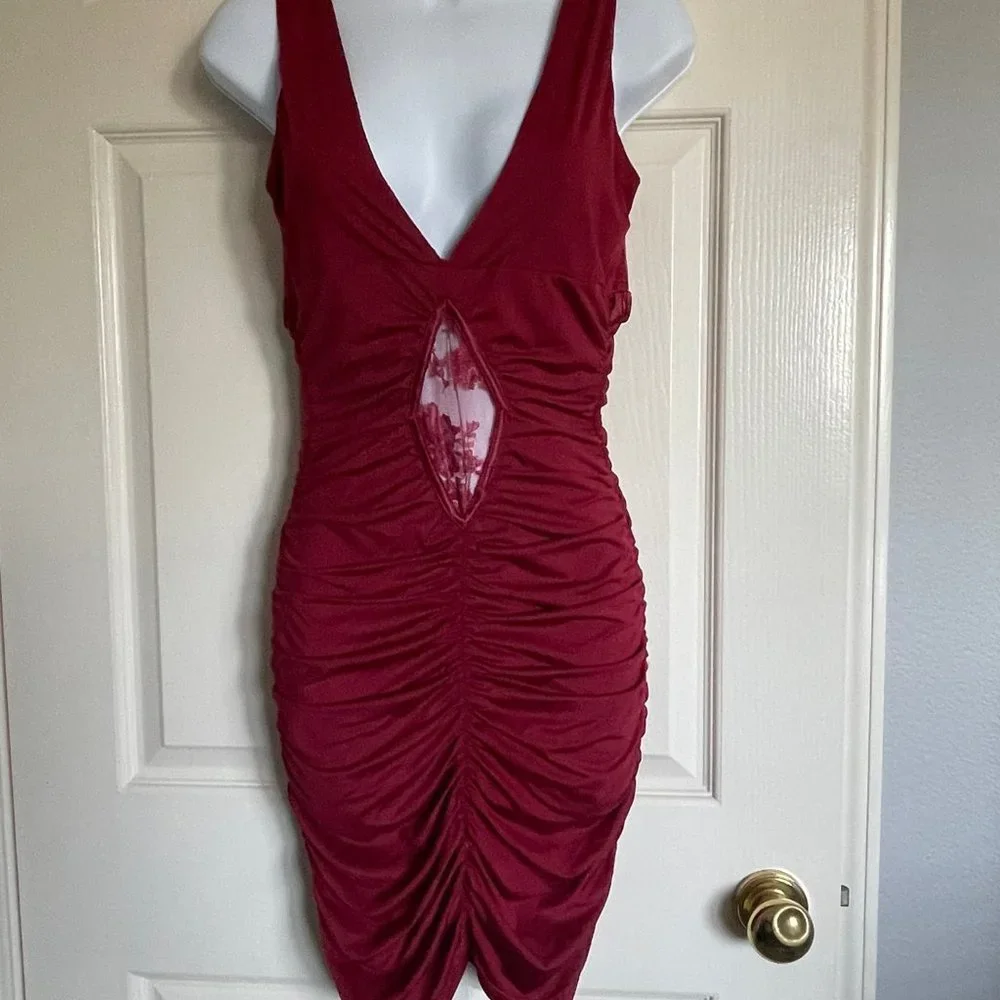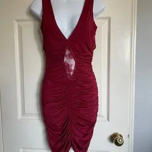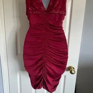 Lightly worn. 95% Red Polyester 5% Spandex