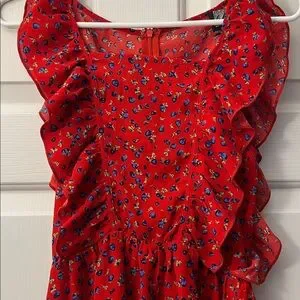Red mini dress with blueberry / floral pattern. Fits like a small