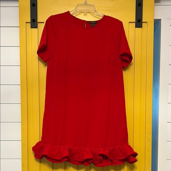 Bright and cheerful, this red dress features a playful ruffle hem, perfect for any occasion.