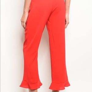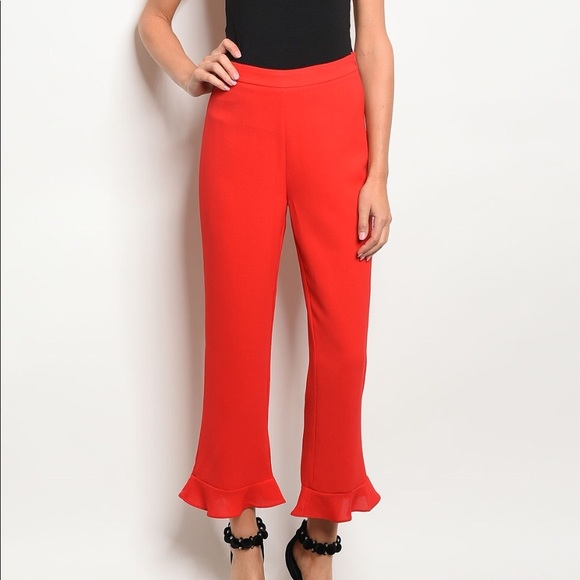 Red Ruffle Hem Pants