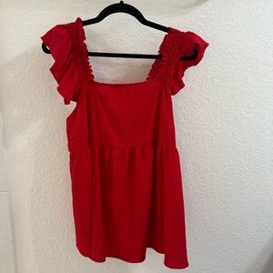 NWOT. Red maternity top with ruffle accents. Perfect for spring/summer! Exceptionally clean, smoke-free home.
